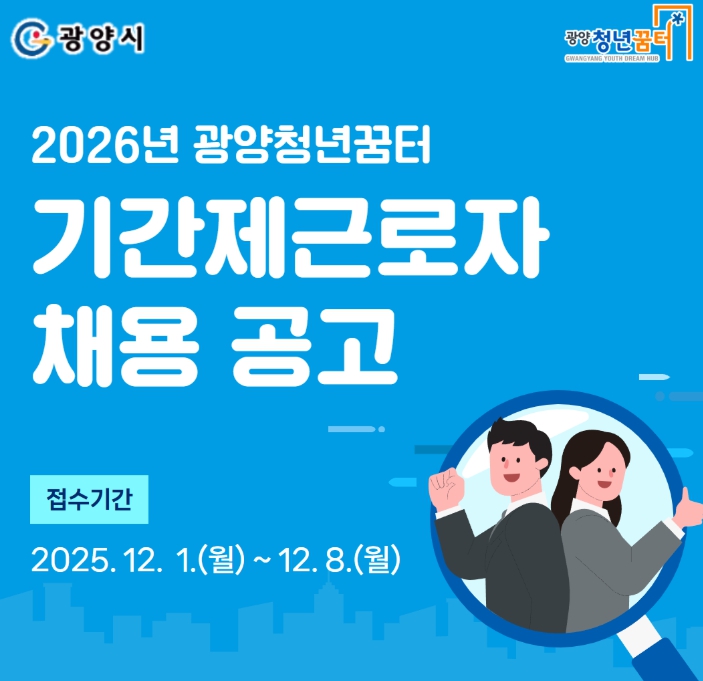 ![]() 광양청년꿈터 기간제근로자 4명 모집 |