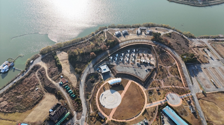 상무평화공원 공공야영장의 가장 큰 장점은 ‘환경’이다. 수양저수지와 가까워 탁 트인 수변 풍광을 한껏 만끽할 수 있다. 저수지 주변으로 데크길과 산책로가 오밀조밀하게 조성돼 걷기에도 좋다.