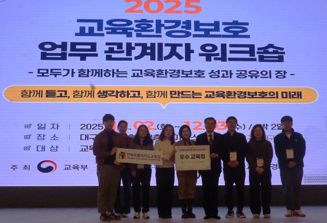 전북교육청은 교육부가 주최하고, 한국교육환경보호원이 주관한 ‘2025년 교육환경보호제도 운영성과 공유회’에서 경기·서울교육청과 함께 우수교육청에 선정됐다고 8일 밝혔다.