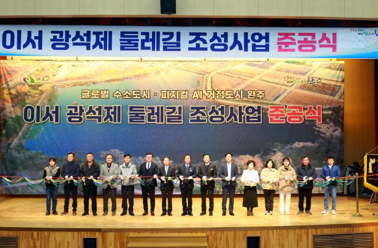 완주군은 이날 완주군·지방자치인재개발원·국립원예특작과학원·한국농어촌공사 전주완주임실지사가 협력해 추진한 ‘이서 광석제 둘레길 조성사업’ 준공식을 열고 새로운 주민 힐링 공간의 탄생을 공식적으로 알렸다.