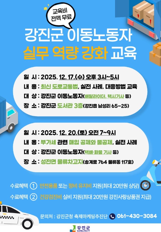이에 따라 강진군은 이번 교육을 통해 노동자의 안전, 건강관리, 직무 역량 향상 등 실질적인 도움이 될 수 있도록 교육을 제공할 예정이다.