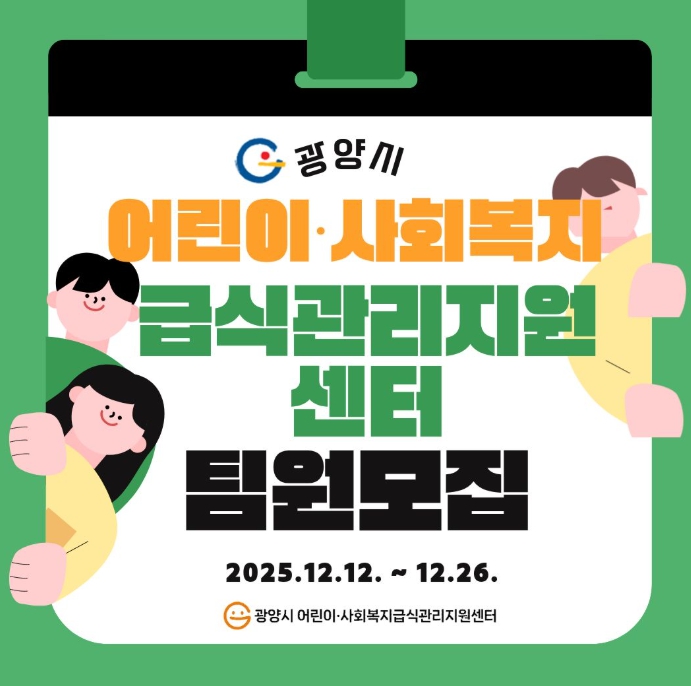 ![]() 어린이·사회복지 급식관리지원센터, 2026년 팀원 4명 공개 채용 |