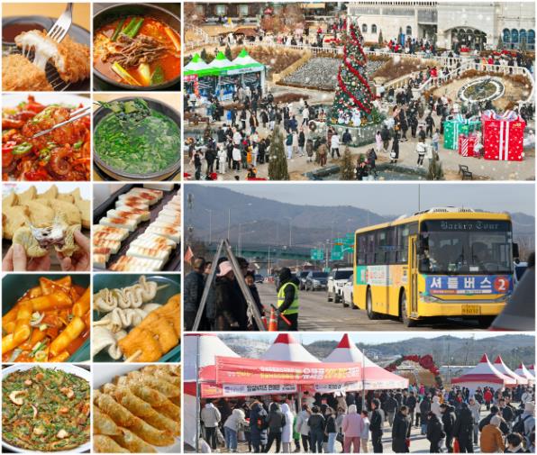 치즈테마파크 편의점 앞 주차장에 조성되는 대형 음식 부스에는 전년보다 확대된 11개 업소가 참여해 다슬기탕, 시래기 육개장, 소고기뭇국, 능이 닭곰탕 등 겨울철 인기 국물 요리를 비롯해 치즈돈가스, 낙지볶음, 황태해장국 등 든든한 식사 메뉴를 선보인다.