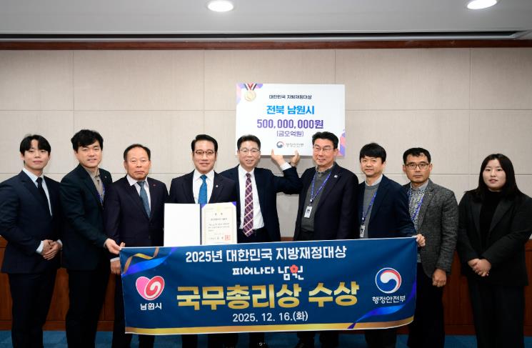 남원시 기획조정실장은 “이번 국무총리상 수상은 한정된 재원 속에서도 유휴자산을 활용해 재정 혁신과 인구소멸 대응 성과를 동시에 거둔 결과로, 확보한 교부세 인센티브 5억 원은 시민 체감도가 높은 사업과 재정 건전성 강화를 위해 활용할 계획”이라고 전했다.
