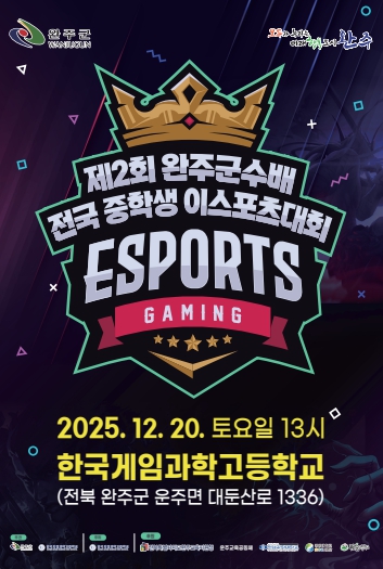 완주군은 오는 12월 20일, 한국게임과학고등학교에서 '제2회 완주군수배 전국 중학생 e스포츠대회'를 개최한다고 밝혔다.