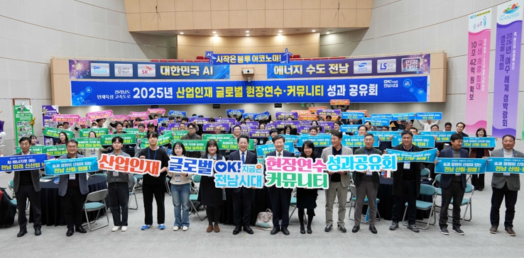 ![]() 김영록 전라남도지사가 20일 도청 왕인실에서 열린 ‘2025년 산업인재 글로벌 현장연수·커뮤니티 성과공유회’에서 참석자들과 기념촬영을 하고 있다. |