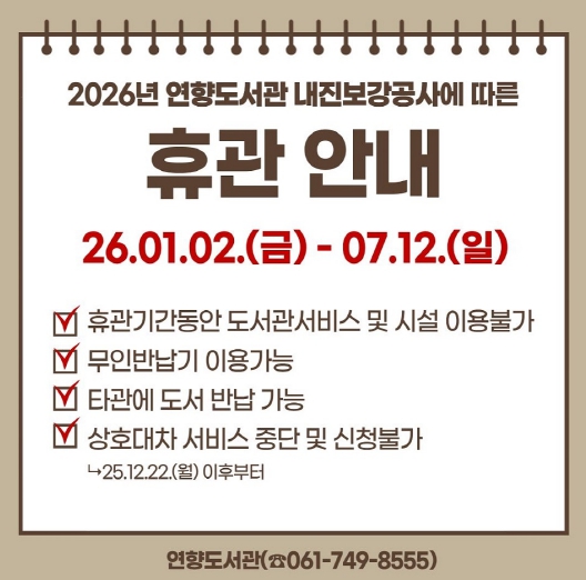 ![]() 순천연향도서관, 휴관안내문 |