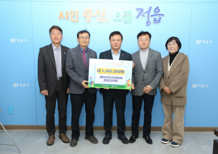 이에 이학수 시장은 “경기가 어려운 상황에서도 매년 잊지 않고 꾸준히 이웃 사랑을 실천해 주시는 대한전문건설협회 정읍지회 회원분들께 깊은 감사의 말씀을 드린다”면서 “맡겨주신 소중한 성금은 도움이 절실히 필요한 이웃들에게 투명하고 공정하게 전달하겠다”고 화답했다.