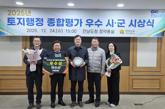 ![]() 여수시가 지난 24일 전라남도 토지행정 종합평가 우수 시·군 시상식에서 우수상을 수상했다. |