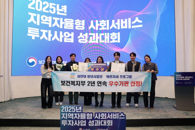 세한대 청년사회서비스사업단은 이용자 중심의 과학적 서비스 제공과 안정적 청년 인력 운영에서 높은 평가를 받았다. 지역사회서비스투자사업인 ‘바른자세 프로그램’은 목표 인원을 초과 달성해 사업 성과의 우수성을 입증했으며, 일상돌봄 신체건강증진 서비스도 지역 주민의 건강 증진에 기여했다.