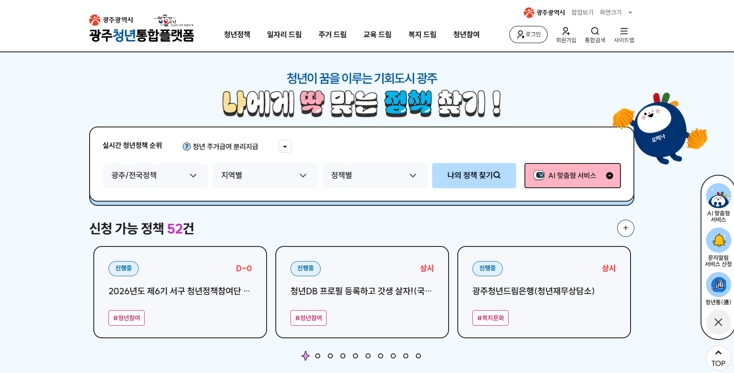 광주청년통합플랫폼은 일자리·주거·교육·복지문화 등 다양한 청년정책 정보를 인공지능(AI) 맞춤형 서비스로 제공하고, 정책 검색부터 신청까지 원스톱으로 가능하도록 개편한 것이 특징이다.