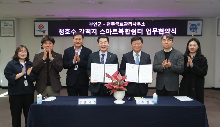 ![]() 부안군-전주국토관리사무소, 청호수 간척지 스마트복합쉼터 조성 업무협약 |