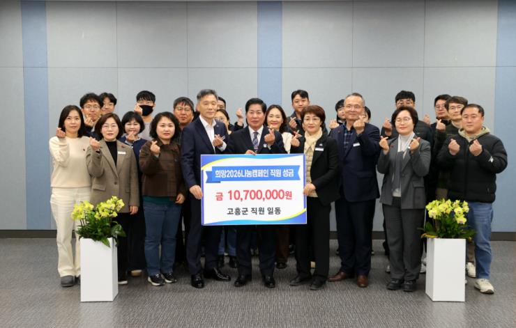 ![]() 고흥군수 산하 직원, ‘희망 2026 나눔 캠페인’ 성금 1,070만 원 기탁 |