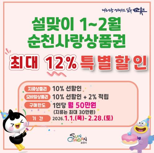 ![]() 순천사랑상품권 “최대 12% 혜택” 새해 소비 총력전 |