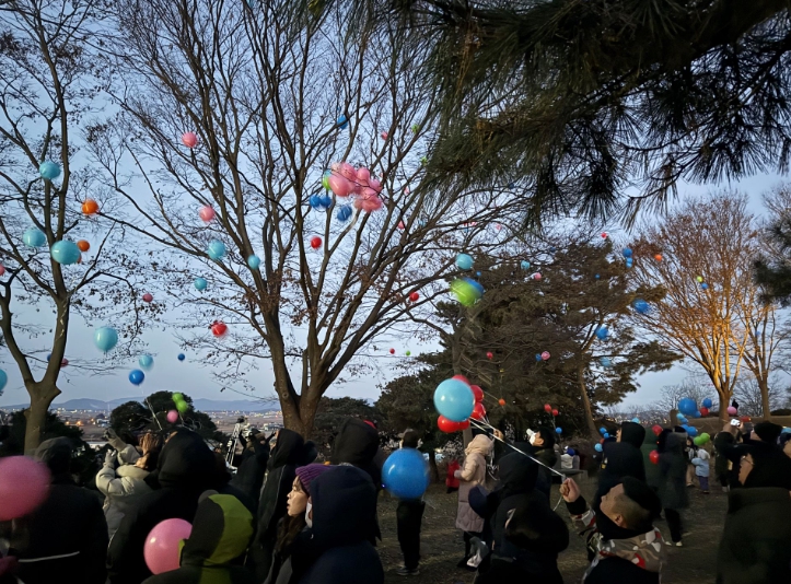 행사는 오전 6시 50분 일출시간에 맞춰 진행됐으며 참석자들은 희망메시지 낭독, 신년 떡국 나눔, 고구마 구워먹기 체험, 소원풍선 날리기 등의 순서를 통해 한 해의 소망을 공유했다.