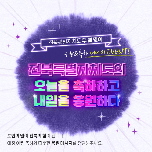 ![]() 전북특별자치도 출범 2주년, 도민 참여 축하·응원 메시지 이벤트 진행 카드뉴스 |