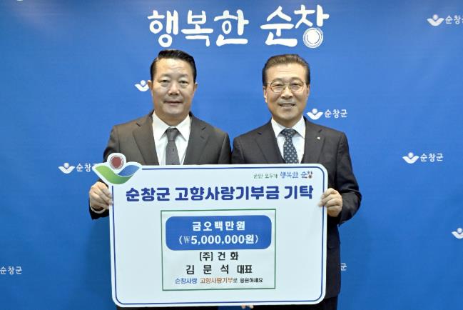![]() ㈜건화 김문석 대표이사, 순창군에 고향사랑기부금 500만원 기탁 |