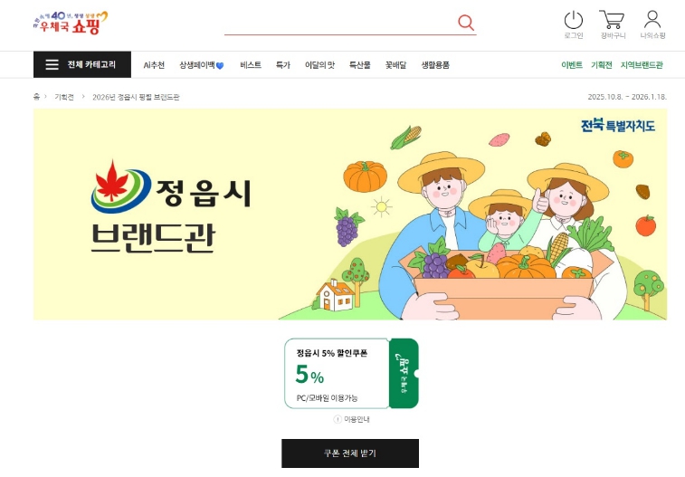시 관계자는 “정읍 농특산물이 온라인 시장에서도 소비자가 믿고 찾는 대표 브랜드로 자리매김할 수 있도록 지원을 아끼지 않겠다”고 말했다.