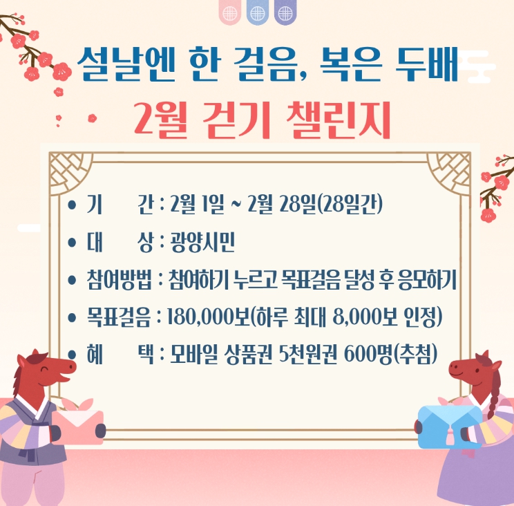 ![]() 워크온 ‘설날엔 한 걸음, 복은 두 배! 2월 걷기 챌린지’ |