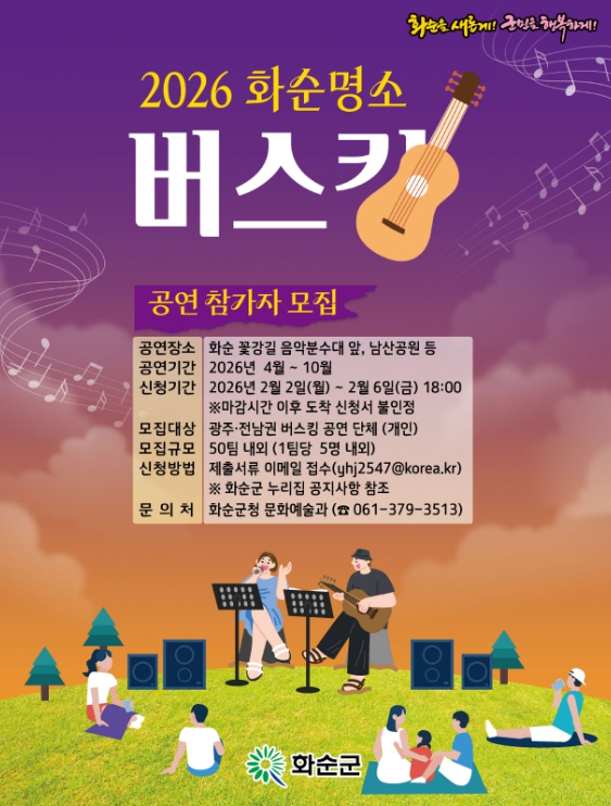 ![]() 2026년 화순 명소 버스킹 참가자 모집 포스터 |