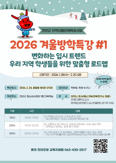![]() 진안군 2026 겨울방학 입시특강 및 1대1컨설팅 개최(포스터) |