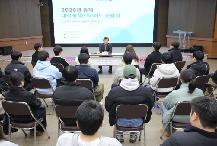 이번 간담회는 지난 4주간 동계 대학생 아르바이트에 참여해 행정 현장을 경험한 학생들을 격려하고 이들이 근무하며 느낀 솔직한 소감과 시정 운영에 대한 건의사항을 자유롭게 나누기 위해 마련됐다.