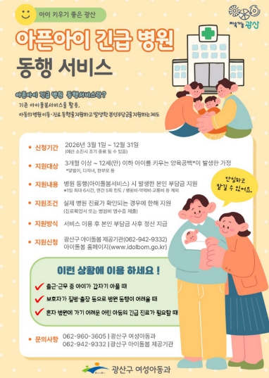 ![]() 광산구 ‘아픈 아이 긴급 병원 동행’ 서비스 웹자보. |