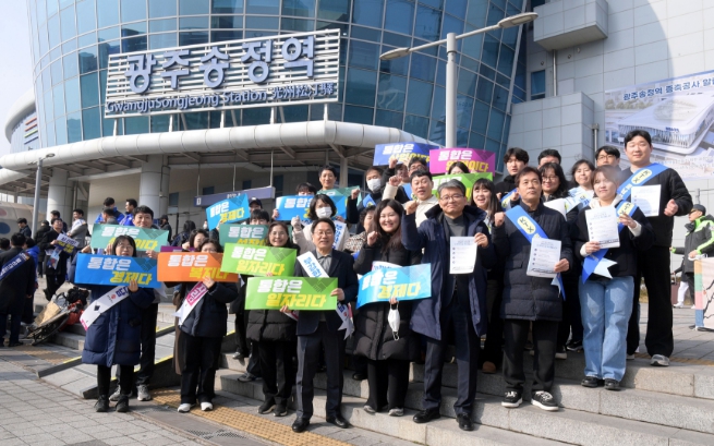 한편 광주시는 설 명절을 맞아 연휴 첫날인 14일 광주송정역에서 광주를 찾는 귀성객을 대상으로 ‘KTX 호남선 단계적 증편 및 광주·전남 통합 안내 캠페인’을 진행했다.