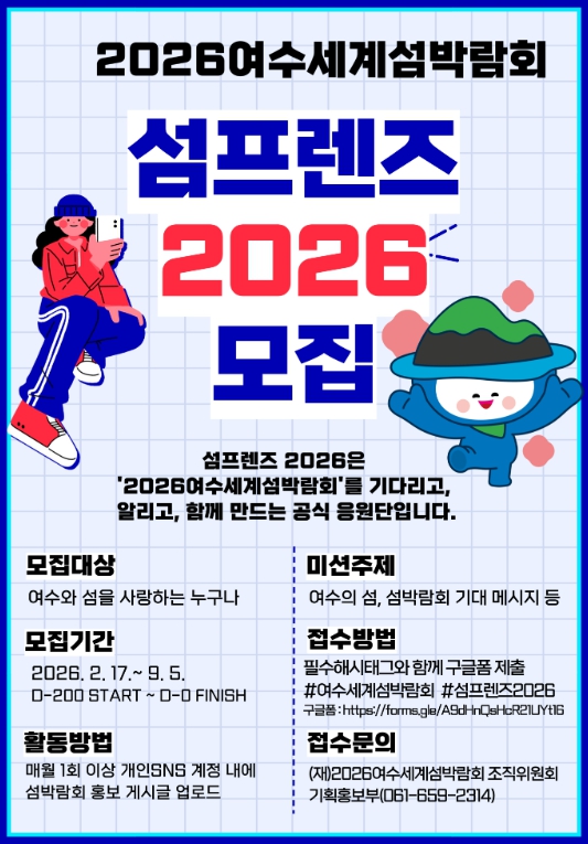 ![]() 2026여수세계섬박람회 섬프렌즈 2026 모집 포스터 |