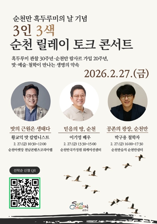 ![]() 2026 순천만 흑두루미의 날 기념, 릴레이 토크 콘서트 |