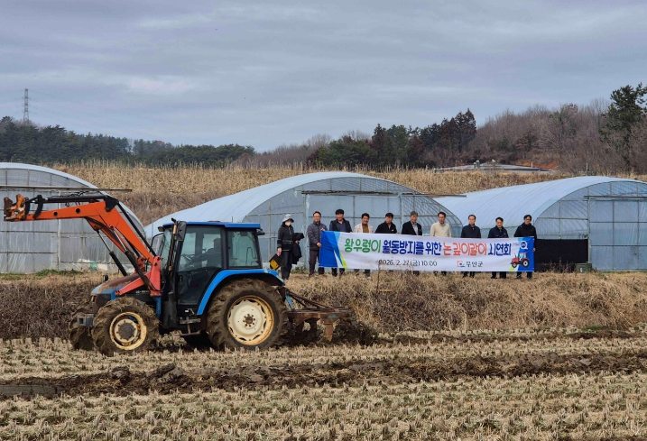 이번 시연회는 벼 수확 이후 논에 남아 있는 왕우렁이와 알을 깊이갈이를통해 토양 깊숙이 매몰해 월동 개체 수를 줄이고, 다음 해 농경지와 하천으로의 확산을 예방하기 위해 마련됐다.