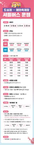 ![]() 제25회 광양매화축제, 주말 도심권 셔틀버스 운영 |