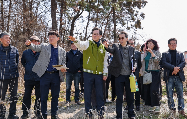 주민과의 대화를 마친 우승희 영암군수 등 영암군 공직자들은, 20여 면민들과 함께 곧바로 시종·도포권역 파크골프장 조성 후보지인 시종소방서 옆 부지를 찾았다.