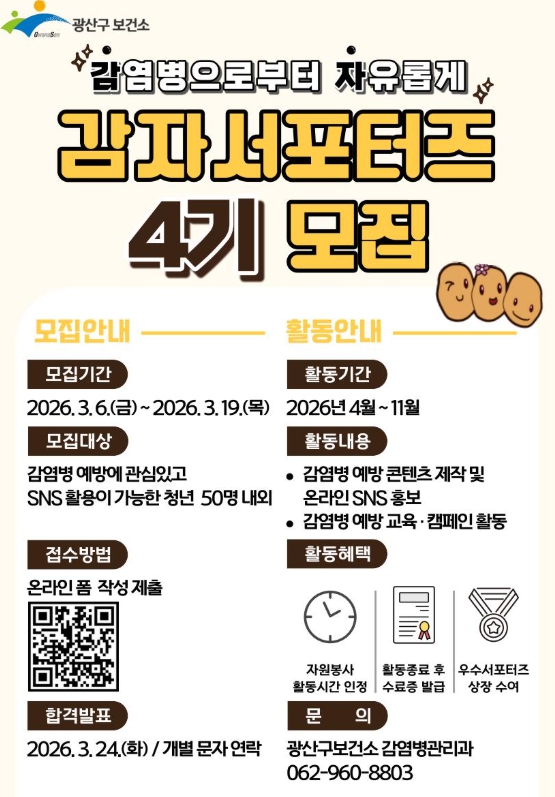 ![]() 광산구, 감자서포터즈 4기 모집 |