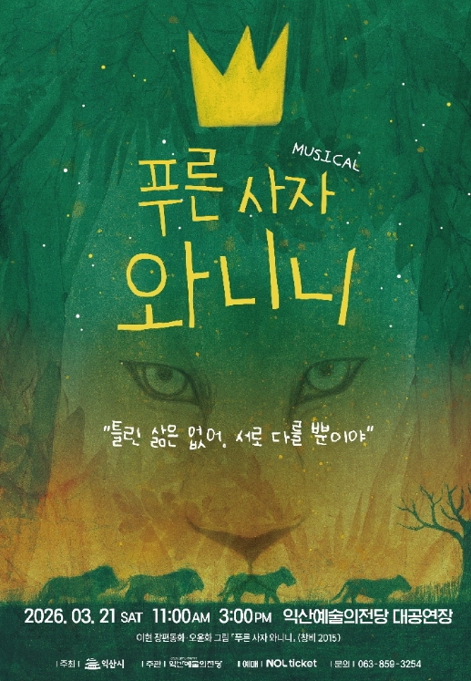 익산시 관계자는 "이번 공연은 세대를 초월해 온 가족이 함께 공감하고 즐길 수 있는 특별한 무대가 될 것"이라며 "관객들이 와니니의 여정을 통해 서로의 소중함과 다름의 가치를 생각해 보는 시간이 되길 바란다"고 말했다.