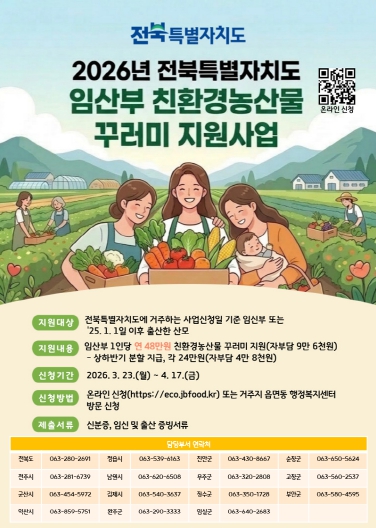 ![]() 전북자치도, 임산부 친환경농산물 꾸러미 지원 |
