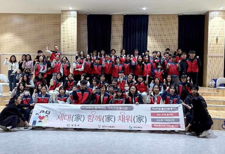 ‘세대家 함께家 채워家’ 연합봉사단은 광양시가족센터 소속 4개 봉사단이 연합해 구성된 총 188명 규모의 세대 통합형 가족봉사단으로, 10대부터 60대까지 다양한 세대가 함께 참여해 세대 간 소통과 이해를 바탕으로 공동체 문화를 확산하고 있다.
