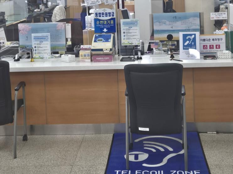 민원 창구에 설치된 장치를 통해 직원의 음성이 자기장 신호로 변환되어 보청기 수신기(T코일)를 통해 직접 전달된다.