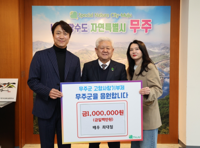 최대철 배우는 “무주에 애정이 깊은 만큼 지역발전과 군민 삶의 질 향상을 누구보다 바라고 있다”라며 “따듯한 마음을 담은 기부금이 무주군민을 위해 크게 쓰였으면 하는 바람”이라고 전했다.