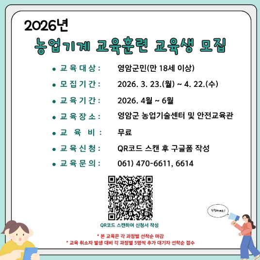영암군은 실습 중심 교육을 통해 농기계 사용 과정에서 발생할 수 있는 안전사고를 예방하고, 농업인의 작업 효율과 안전성을 함께 높일 계획이다.