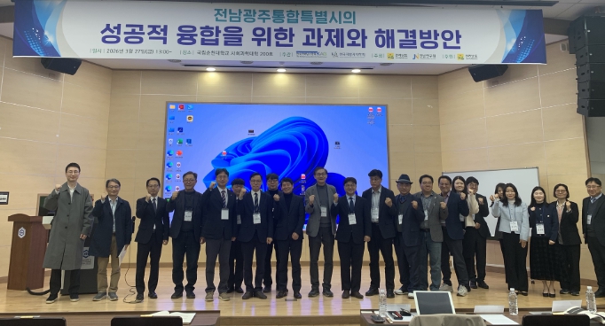 전남도는 27일 순천대학교 사회과학관에서 한국거버넌스학회, 한국지방자치학회와 공동으로 ‘전남광주통합특별시의 성공적 통합을 위한 추진과제’ 학술포럼을 개최했다.