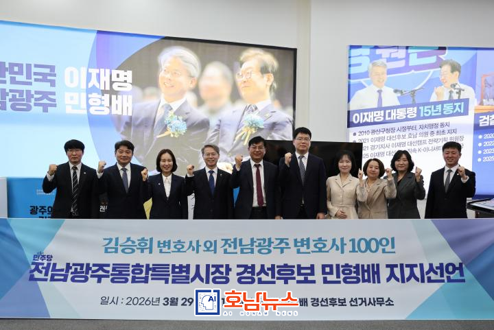 더불어민주당 전남광주통합특별시장 경선 후보인 민형배 국회의원(광주 광산구을)이 전남·광주 지역 변호사 100명의 공식 지지 선언을 이끌어내며, 선거 판도에 중대한 변곡점을 만들어냈다.