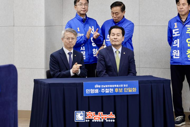 더불어민주당 경선 후보인 민형배 국회의원(광주 광산구을)과 주철현 국회의원(전남 여수갑)이 1일 전격 단일화를 선언하며, 단순한 후보 결합을 넘어 ‘가치와 정책의 통합’이라는 새로운 정치 실험에 돌입했다.