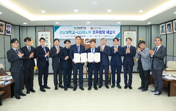 8일 전남대학교에 따르면, 7일 대학본부에서 LG이노텍과 산업 맞춤형 인재 양성 및 공동 연구 협력 강화를 위한 업무협약(MOU)을 체결했다.