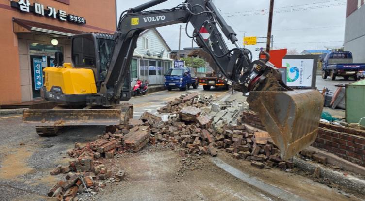 붕괴된 담장 잔해물이 주변 도로로 흩어지며 주민 통행 불편과 안전사고 우려가 커졌다.