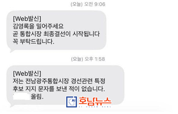 전남·광주 통합특별시장 경선이 진행 중인 가운데, 특정 후보 지지를 호소하는 문자가 당사자 동의 없이 대량 발송된 사실이 드러나면서 ‘명의도용 불법 선거운동’ 논란이 급속히 확산되고 있다.