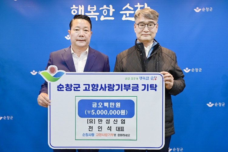 ![]() (유)만성산업 전인석 대표 순창군에 고향사랑기부금 500만원 기탁 |
