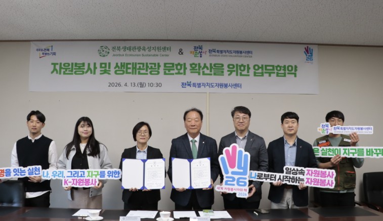 이번 협약은 자원봉사 활동과 생태관광을 연계하여 도민과 관광객이 함께 참여하는 실천 중심의 환경보호 문화를 확산하고, 전북 특별자치도만의 지속가능한 생태관광 모델을 구축하기 위해 마련됐다.