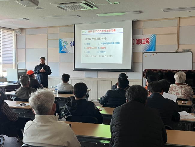 이번 교육은 최근 인근 지자체에서 총기 오인 사고로 인한 인명 피해가 반복적으로 발생함에 따라 수렵인과 주민의 안전사고를 예방하기 위해 마련됐다