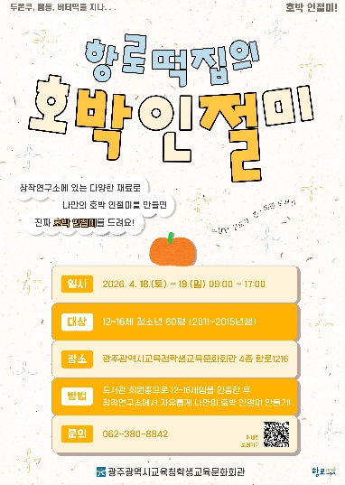 ![]() [포스터] “광주 대표 간식 ‘호박 인절미’ 함께 만들어요” |